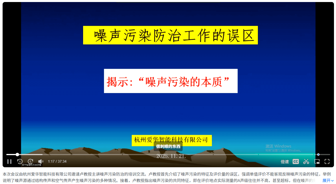 2025年11月21日,杭州愛華智能科技有限公司有幸邀請了原廣州市環(huán)境監(jiān)測中心站教授級高級工程師盧慶普老師前來交流指導,并通過線下和線上視頻會議模式,為從事噪聲監(jiān)測及污染防治工作的廣大客戶朋友做了“噪聲污染防治工作誤區(qū)與本質(zhì)探析”專題培訓交流會。